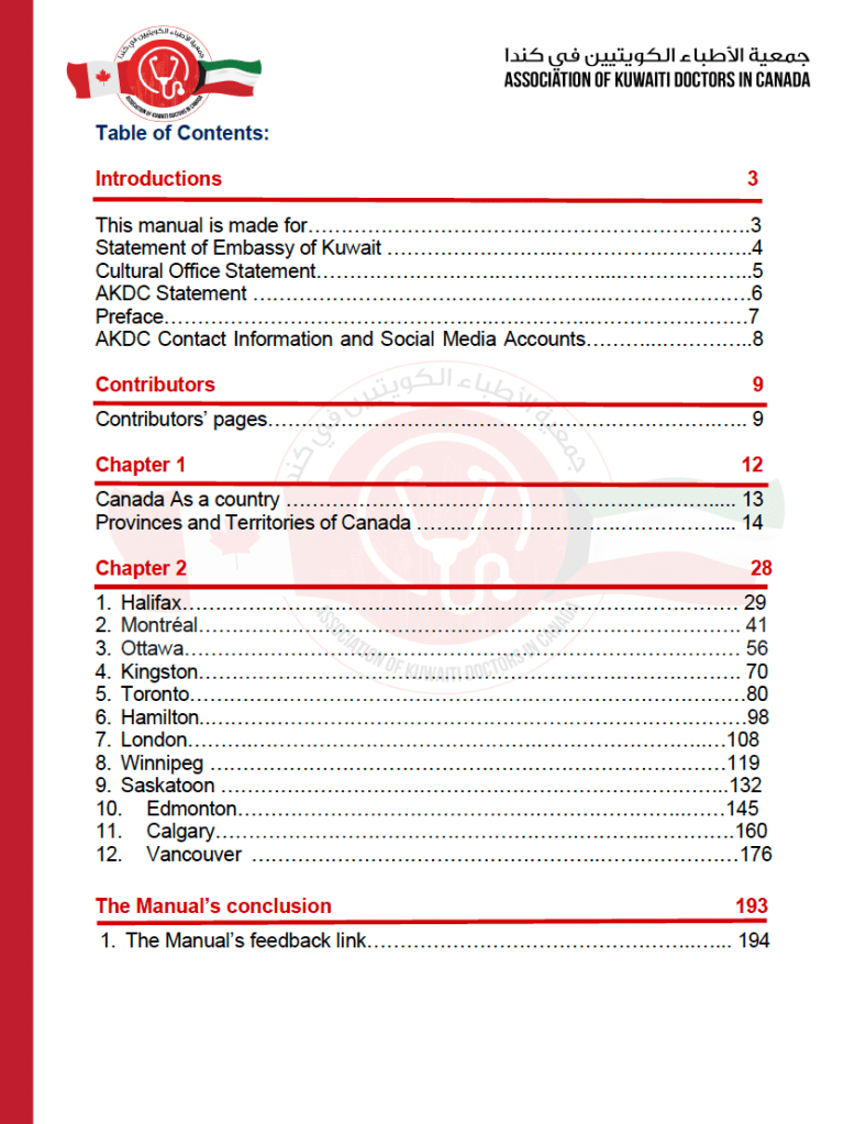 الهدف الأساسي من إنشاء هذا الدليل هو إيجاد مصدر موثوق للمعلومات المختلفة الخاصة بمختلف المدن الكندية والتي ستعود بالنفع بإذن الله على جميع الأطباء الكويتيين المقيمين في كندا وحديثي الالتحاق وكذلك طلبة الكويت المبتعثين وجميع أبناء الكويت والخليج العربي في كندا، نتمنى أن يساهم هذا الدليل في جعل تجربتكم الكندية أجمل. تم نشر هذا الدليل في الخامس والعشرون من فبراير سنة ٢٠٢٣ متماشياً مع احتفالات الكويت الوطنية بمناسة الذكرى الـ ٦٢ للاستقلال والـ ٣٢ للتحرير.
