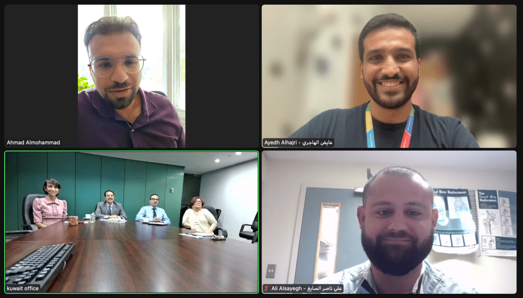 كندا في ١٣ / ٧ / ٢٠٢٢ مـ: تم في يوم الأربعاء اجتماع جمعية الأطباء الكويتيين في كندا مع المكتب الثقافي الكويتي في واشنطن المسؤول عن شئون أطباء الكويت في كندا مبتعثي ديوان الخدمة المدنية وذلك بحضور كل من الدكتور عادل مال الله، رئيس المكتب الثقافي والملحق الثقافي د. يوسف الرفاعي والملحق الثقافي د. نجلاء الفرج وكذلك حضور د. نيفاي مسؤولة شئون الدراسات العليا للأطباء في المكتب.