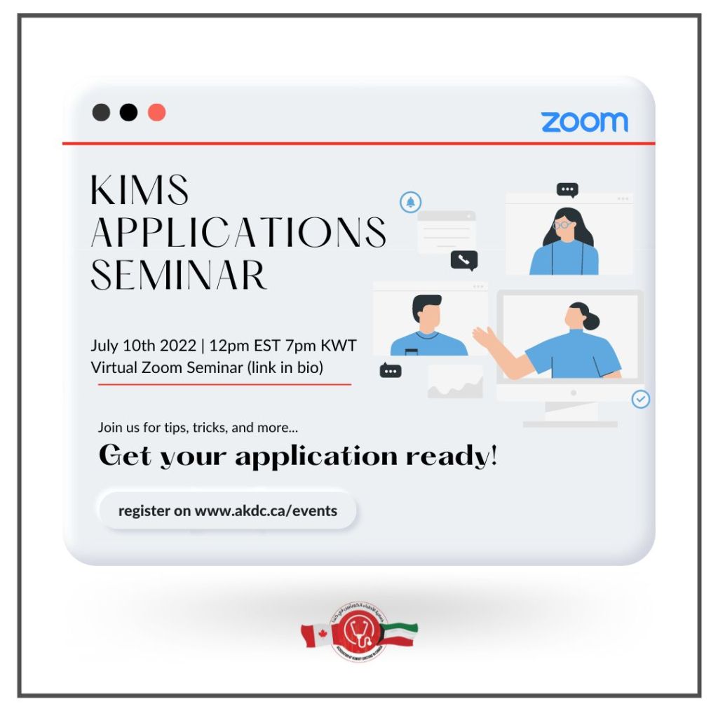 We at the AKDC are thrilled to invite all Kuwaiti doctors who are planning to apply to the KIMS Canadian residency match for 2023 to attend our virtual Application Seminar.