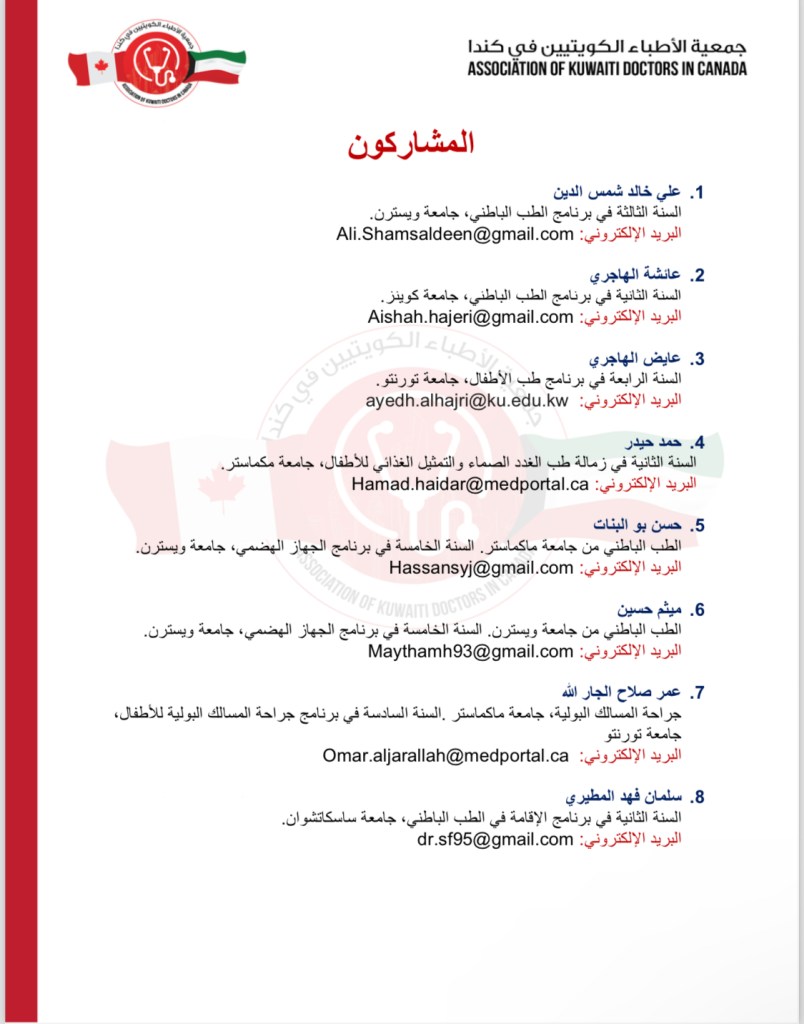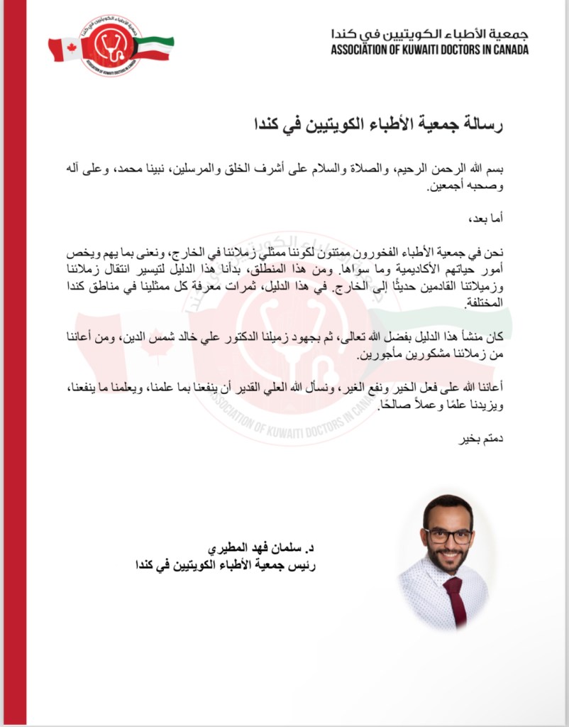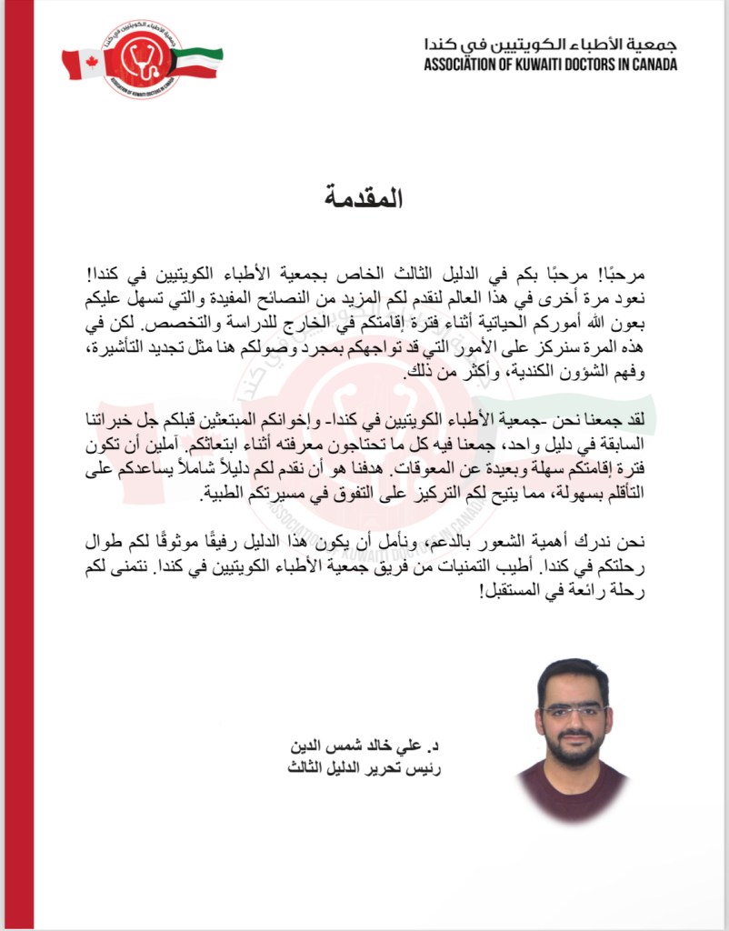 طلبة الطب وأطباء الكويت الأعزاء، يسرّنا أن نُقدّم لكم ”دليل أطباء الكويت في كندا“ في نسخته الثالثة.